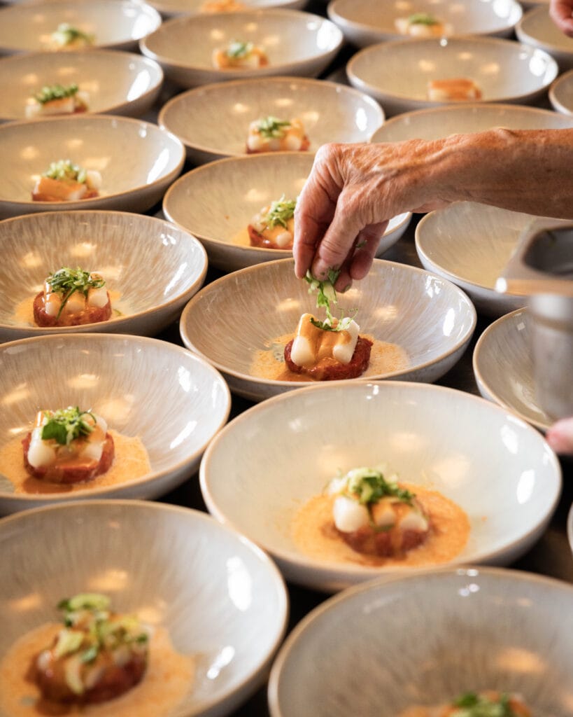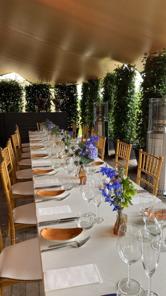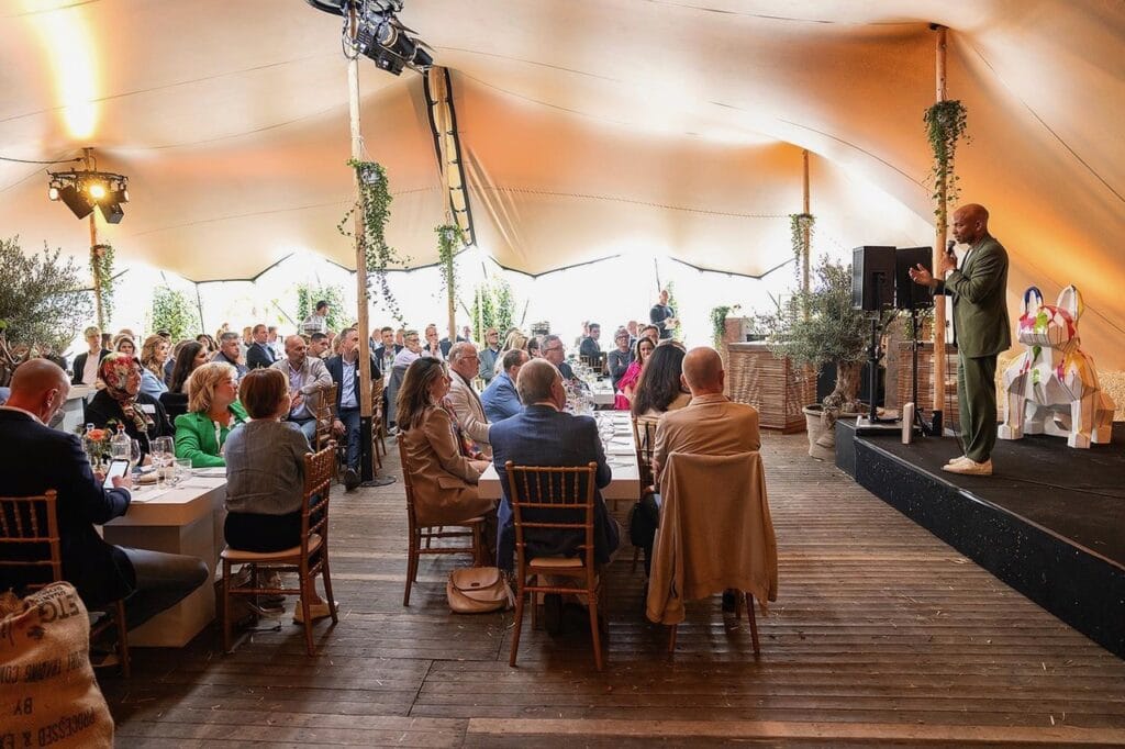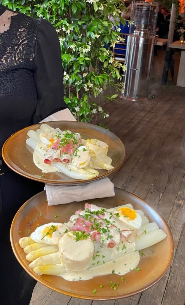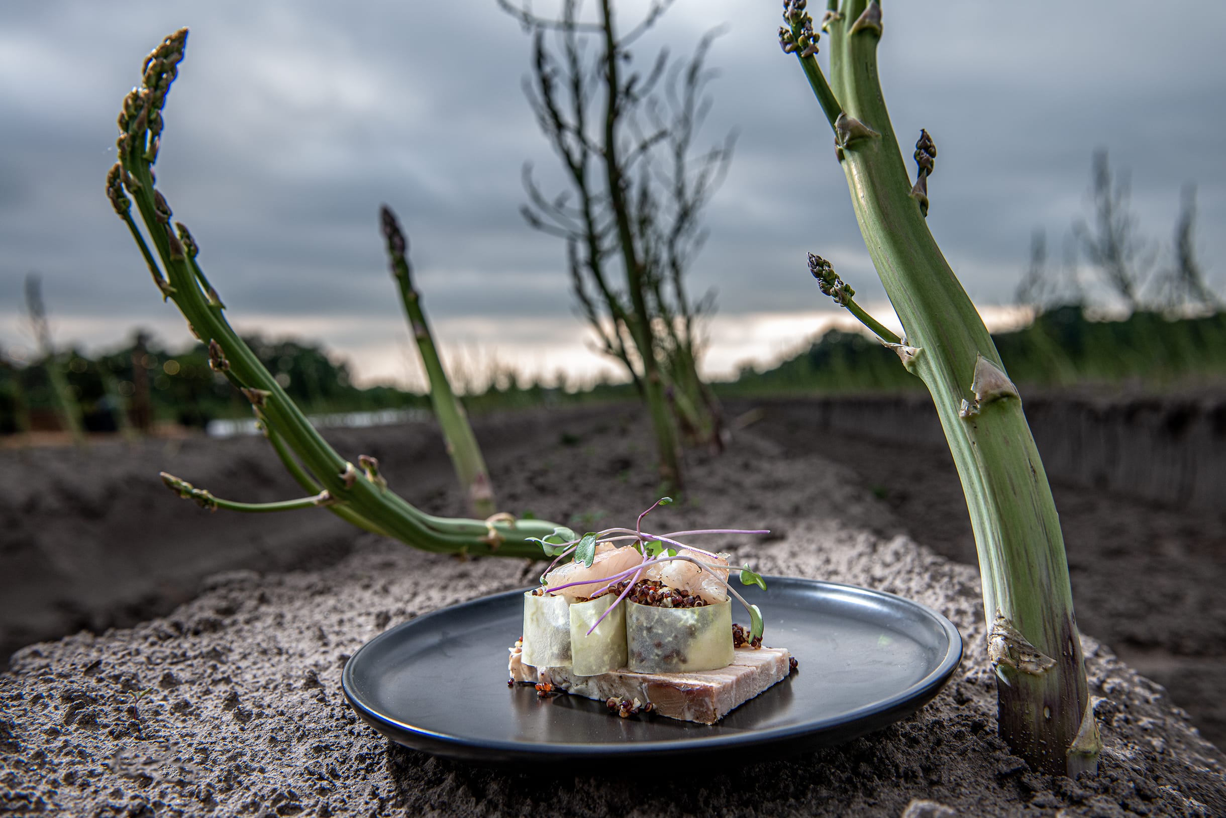 Van 2015 t/m 2018 heeft Asperges op de Velden plaats gevonden bij de Raaijmakers Hoeve in Nuenen. In 2019 is het pop-up restaurant verhuisd naar de velden van Aspergekwekerij Kelders in Veldhoven waar het evenement vier edities heeft gekend. In 2025 zijn we verhuisd naar Aspergekwekerij Vermeer in Leende, waar we ook in 2026 zullen neerstrijken. Ons sfeervol ingerichte openluchtrestaurant ligt midden in de aspergevelden en biedt zowel ruimte voor kleinere groepen, sfeervol en intiem, als voor grotere gezelschappen tot een maximum van 180 (overdekte) zitplaatsen. Daarnaast beschikken we over een (deels) overdekt aangrenzend terras dat tevens ruimte biedt aan 100 extra gasten.